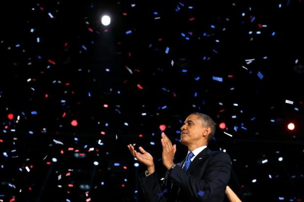 reeleição nos Estados Unidos, no qual estendeu a mão ao rival republicano Mitt