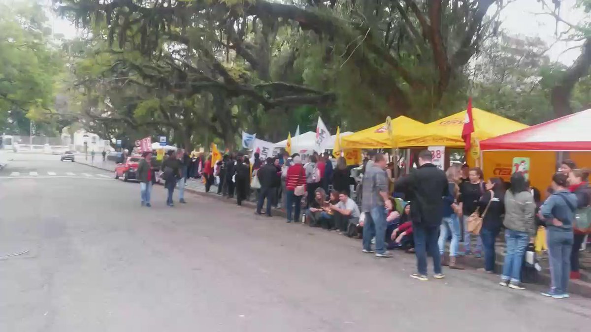 Grande do Sul na praça da Matriz, Centro de Porto Alegre. A ação em frente ao