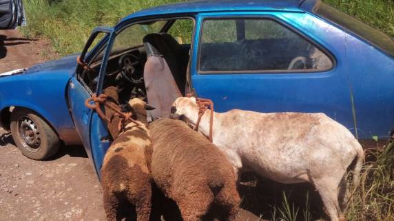 de um GM/Chevette, que vinha transportando quatro ovinos vivos, resultado de um