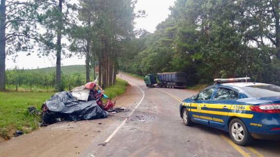 Com a violência do impacto, o carro ficou completamente destruído e o condutor, ainda não identificado, e uma passageira, de 28 anos, morreram instantaneamente. Uma menina de 3 anos, que estava no banco traseiro do automóvel, foi socorrida e encaminhada para atendimento médico no hospital de Lagoa Vermelha. O motorista do caminhão, de 37 anos, não se feriu.