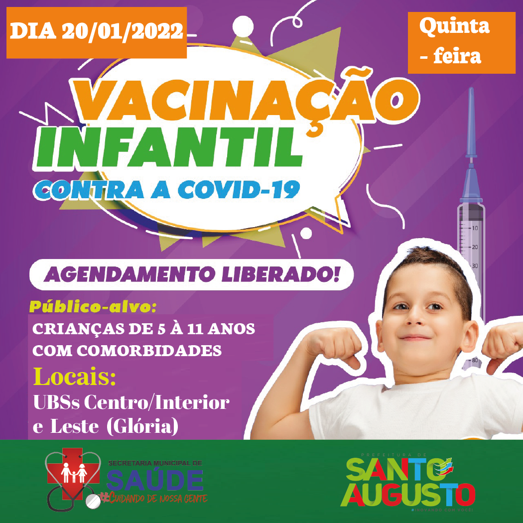 Destacamos que nesse dia, as vacinas contra o covid-19 será realizada para as crianças apenas nessas duas unidades, e que não serão realizadas vacinas de rotinas ou para adultos.